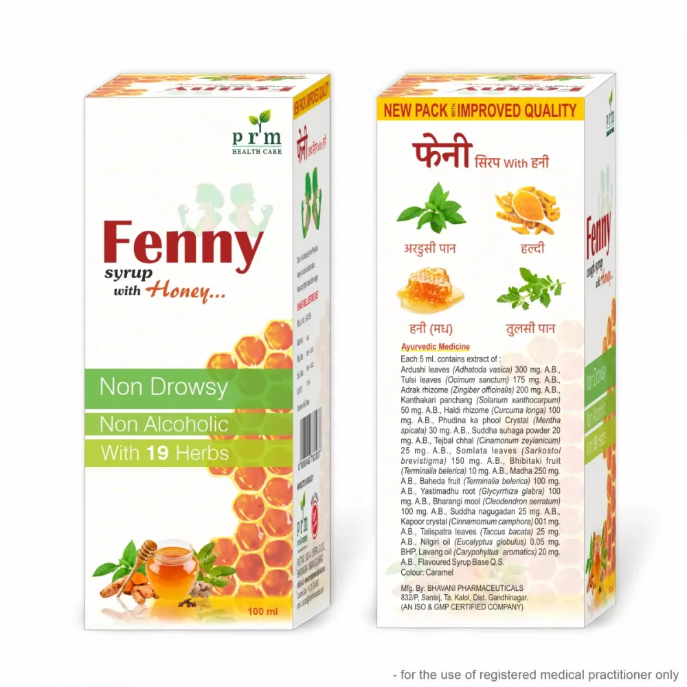 PRM Fenny Ayurvedic Syrup 100ml (Pack of 2) Natural Cough & Cold Remedy with Honey, Ardusi, Haldi & Tulsi