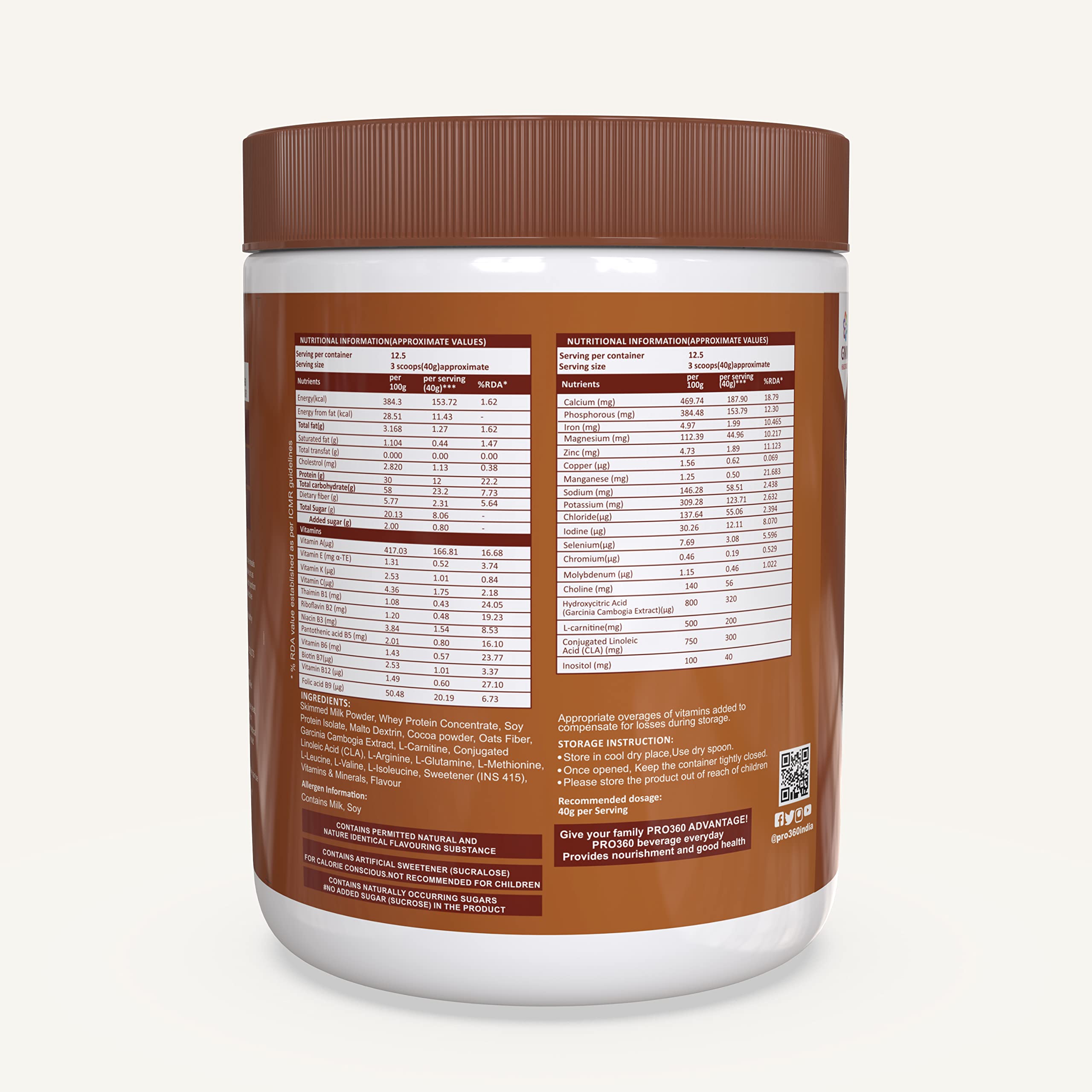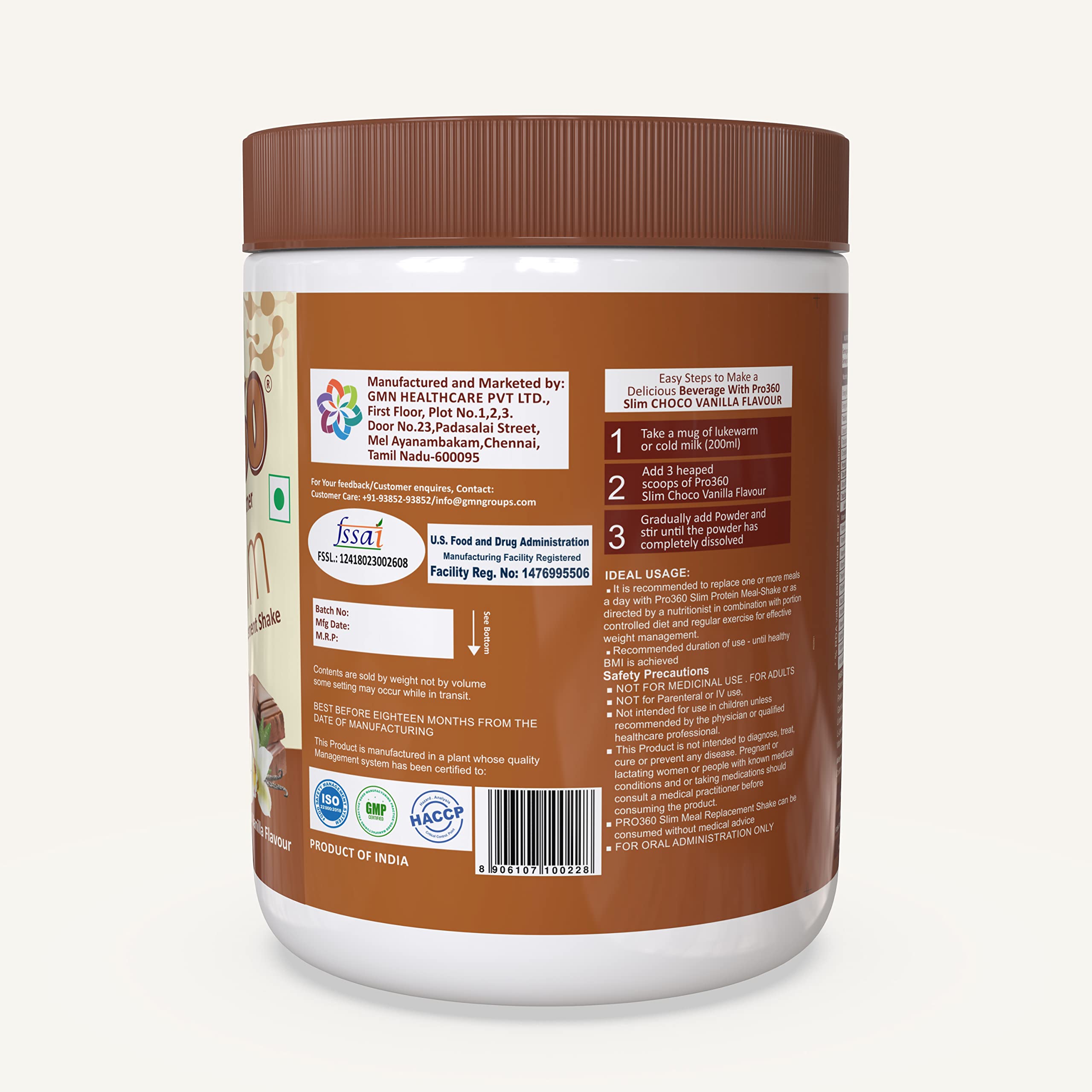 Pro360 Meal Replacement Shake Powder|500g Dietary Supplement for Weight Management |No Added Sugar| Protein Supplement for Men & Women | Choco Vanilla
