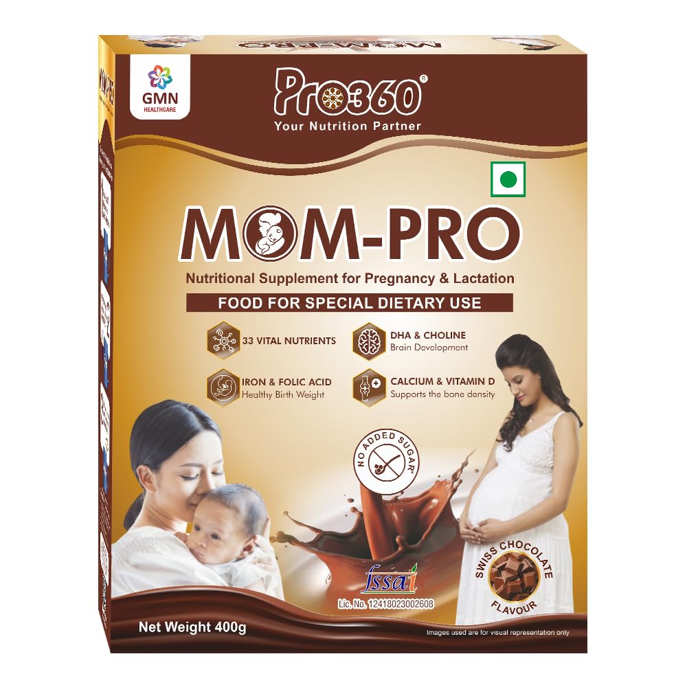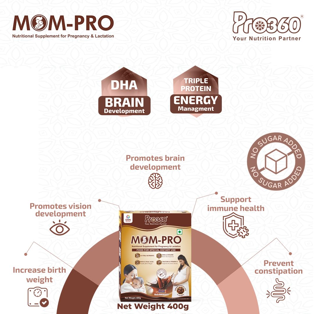 Pro360 MOM-Pro Protein Powder for Pregnant Women | 400gm Swiss Chocolate Flavour Nutritional Powder for Pregnancy | Mother Protein Powder | Vital Nutrients to Support Baby Brain Development