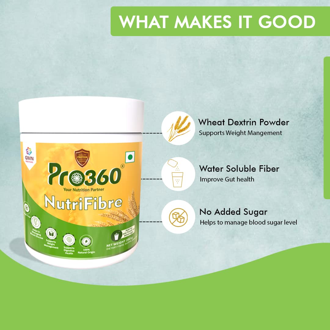 Pro360 NutriFibre Plant-Based Fiber Supplement Powder| 250g Water Soluble Prebiotic Fibre Supplement| Dietary Fiber for Digestive Gut Health & Weight Management
