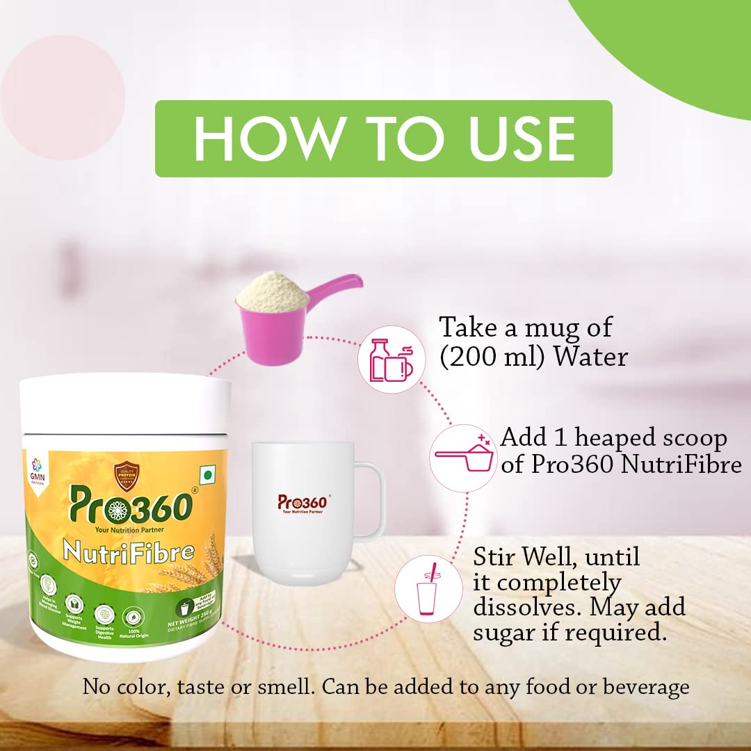 Pro360 NutriFibre fibre supplements dissolve easily in water or your favorite beverages making it a practical and versatile choice among fiber supplements for daily use.