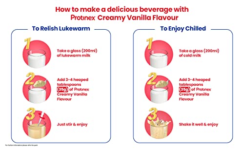 Protinex Health And Nutritional Drink Mix For Adults with High protein & 10 Immuno Nutrients Vanilla Delight 400gProtinex Vanilla Delight is a vegetarian ready to serve beverage mix that helps bridge the gap of nutrients from diet of Indian Adults. Protinex Vanilla Delight is an adult nutritional drink mix that is clinically proven to provide 34% higher immuno boosters that help build immunity# 12 Protinex contains 22 essential vitamins and minerals including 10 immuno nutrients³; that help support immunity build strength and provide energy. Protinex consists of nutrients that help in building bone strength growth & maintenance of muscle mass improving metabolism formation of blood cells and maintaining fluid & electrolyte balance**. Available in vanilla flavor Protinex easily makes its place in your everyday diet plan and with zero added sugar* and low fat it is suitable for daily consumption. It can be taken with milk or water.Protinex Mama - 250 g (Vanilla)Protein supplement for Healthy Mother Healthy Baby.