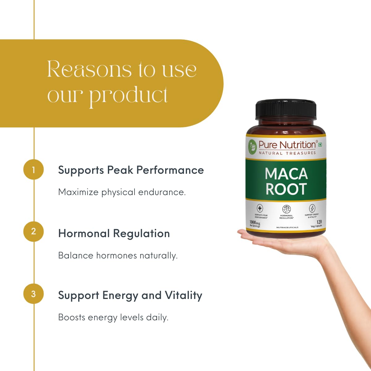 Pure Nutrition Maca Root is a premium dietary supplement designed to support overall health and vitality. Made with high-quality Maca root extract each capsule delivers 1000mg of this potent superfood widely known for its natural ability to promote reproductive health increase energy levels and enhance physical and mental performance.