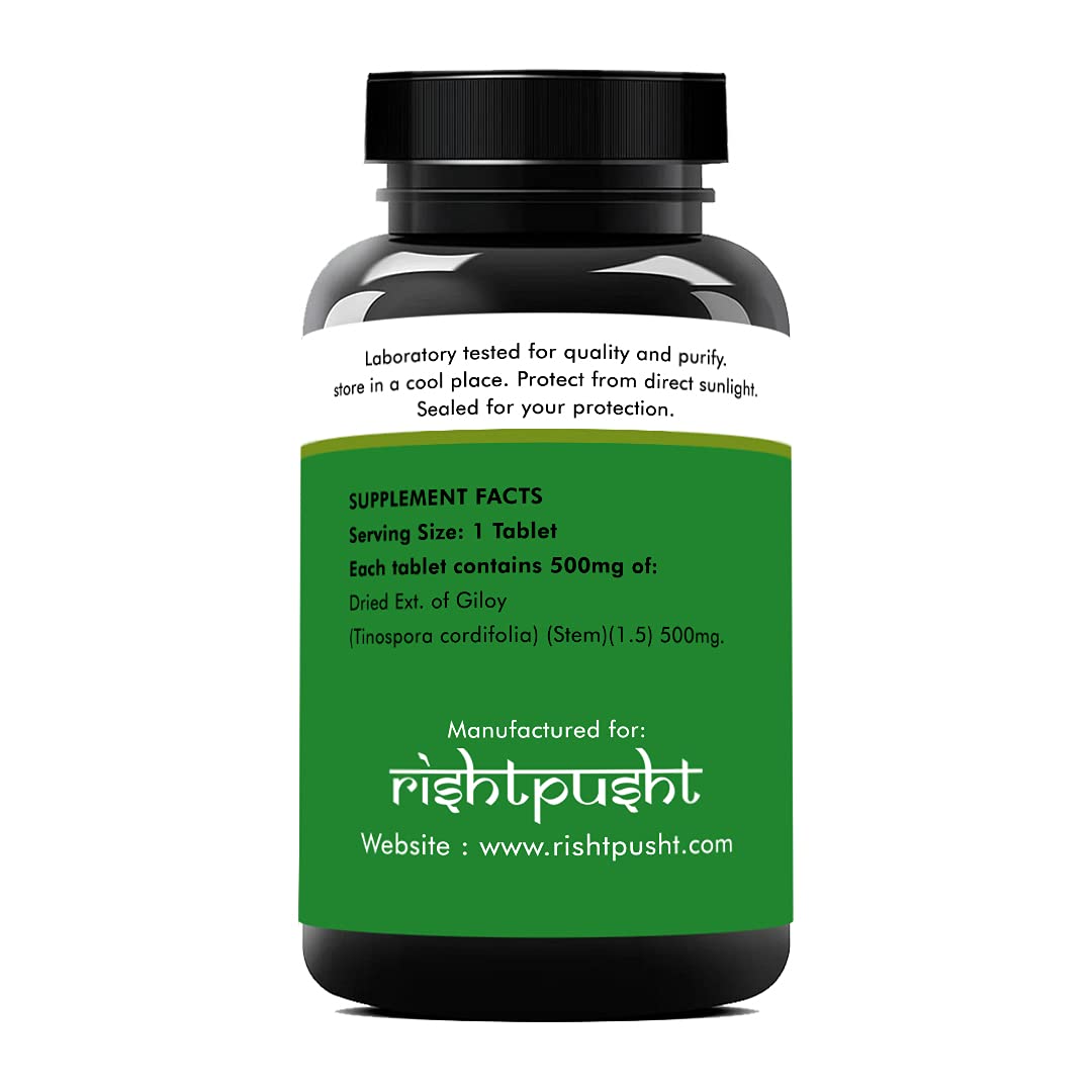 Rishtpusht Giloy Tablets (Guduchi) Natural Giloy Extract Antioxidant Properties Immunity Booster Health and Wellness with 2X Immunity - 60 Veg Tablets