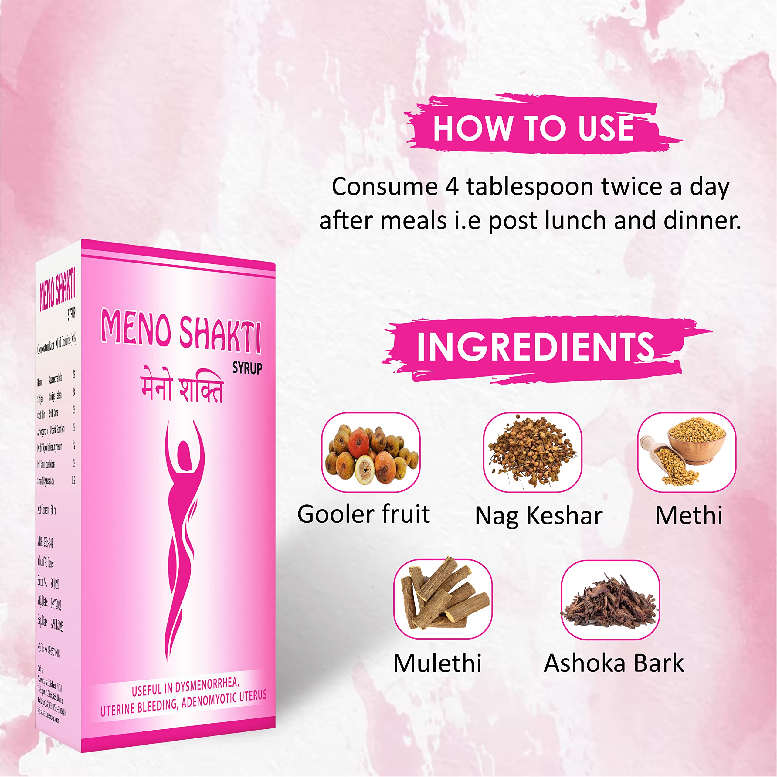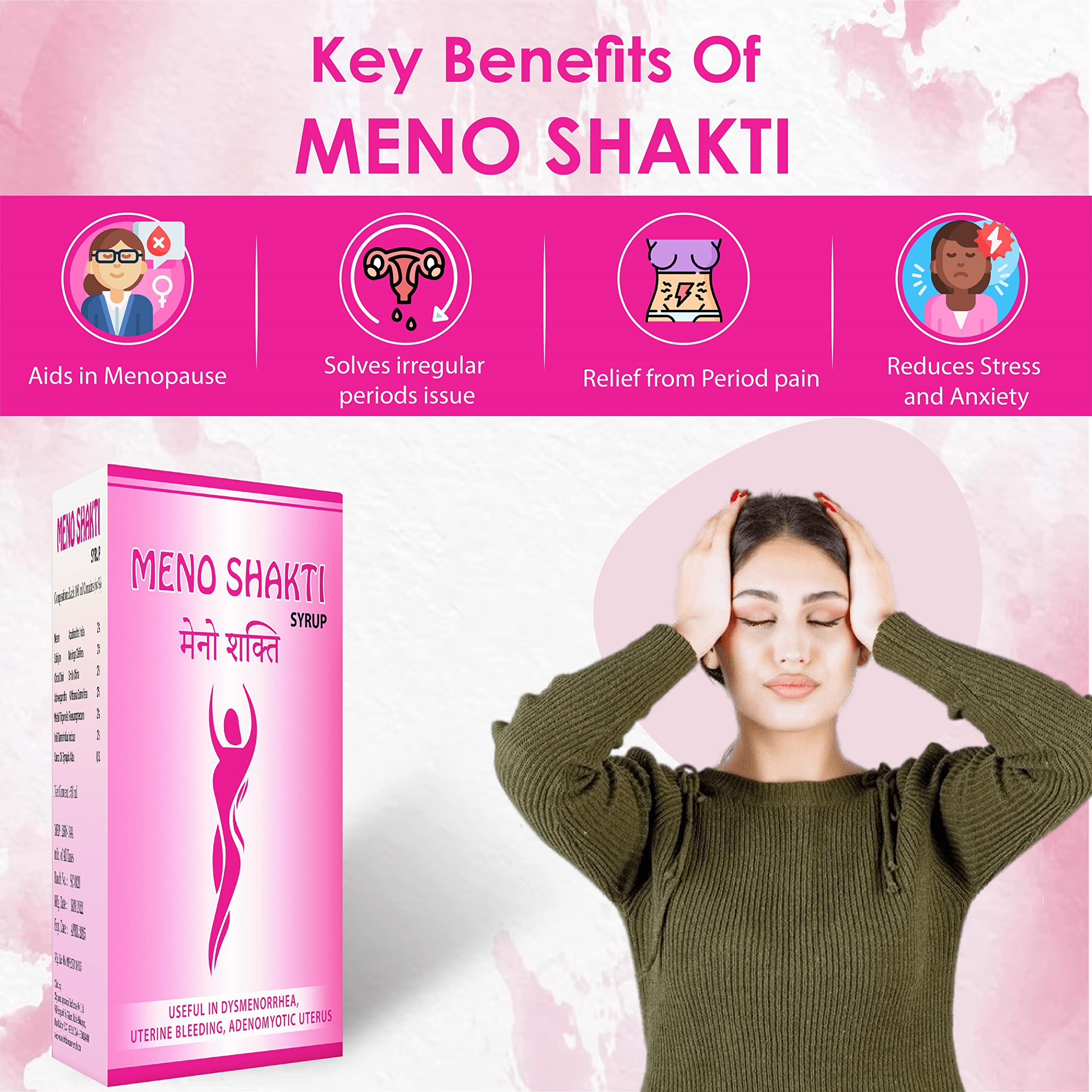 Shri Chyawan Ayurveda's Menoshakti Syrup helps in regulating irregular periods and hormonal imbalance. It helps to maintain the estrogen levels considerably reduces stress and anxiety reduces hot flashes and night sweats.