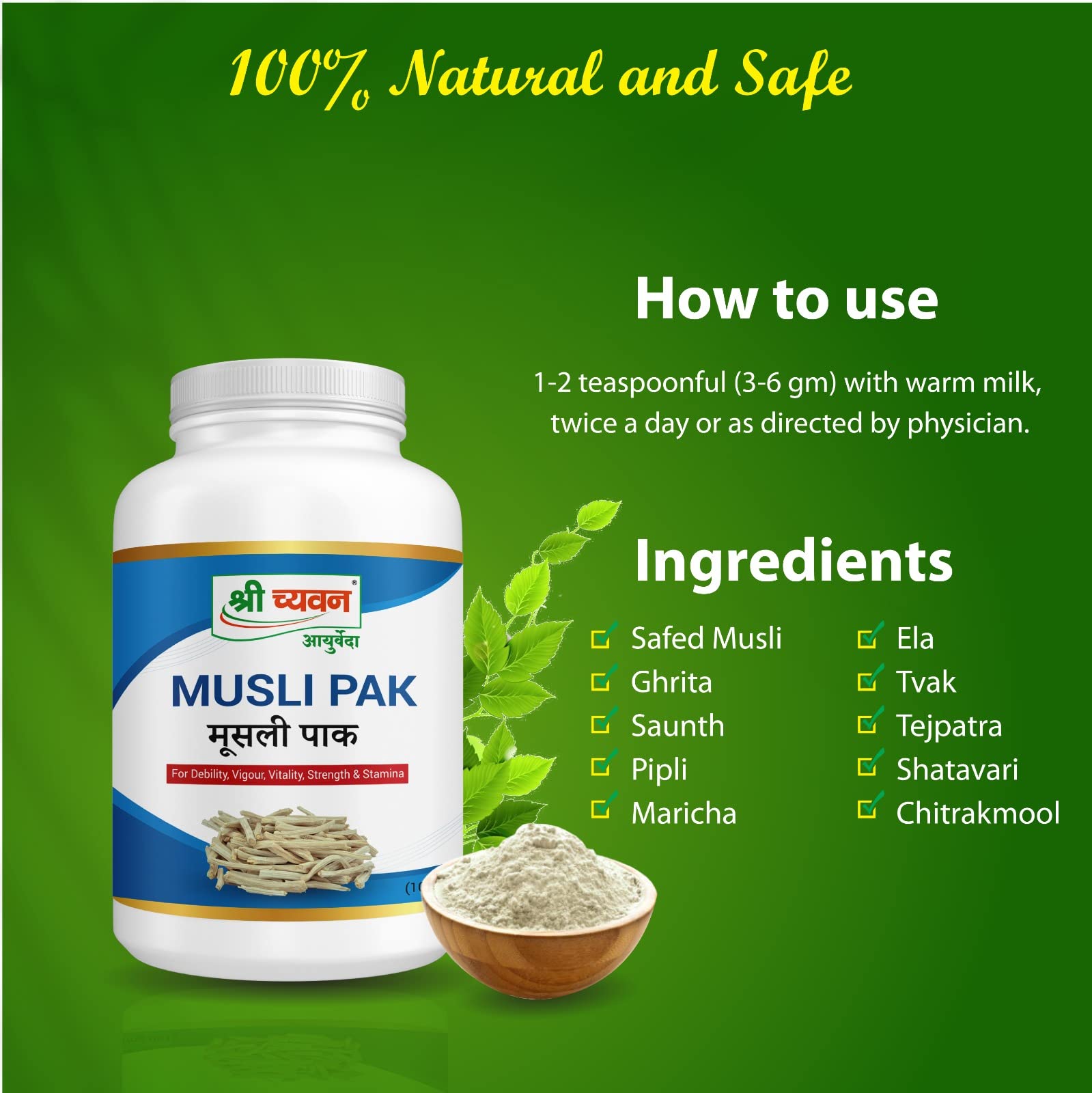 Shri Chyawan Ayurveda Musli Pak Powder -| For Strength and Stamina | Vigor and Vitality| Physical Health | -100 gm (Pack of 2)