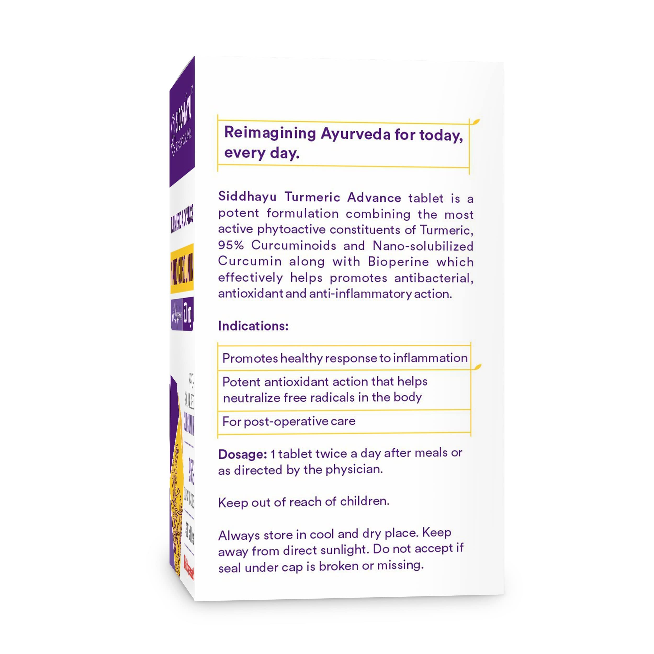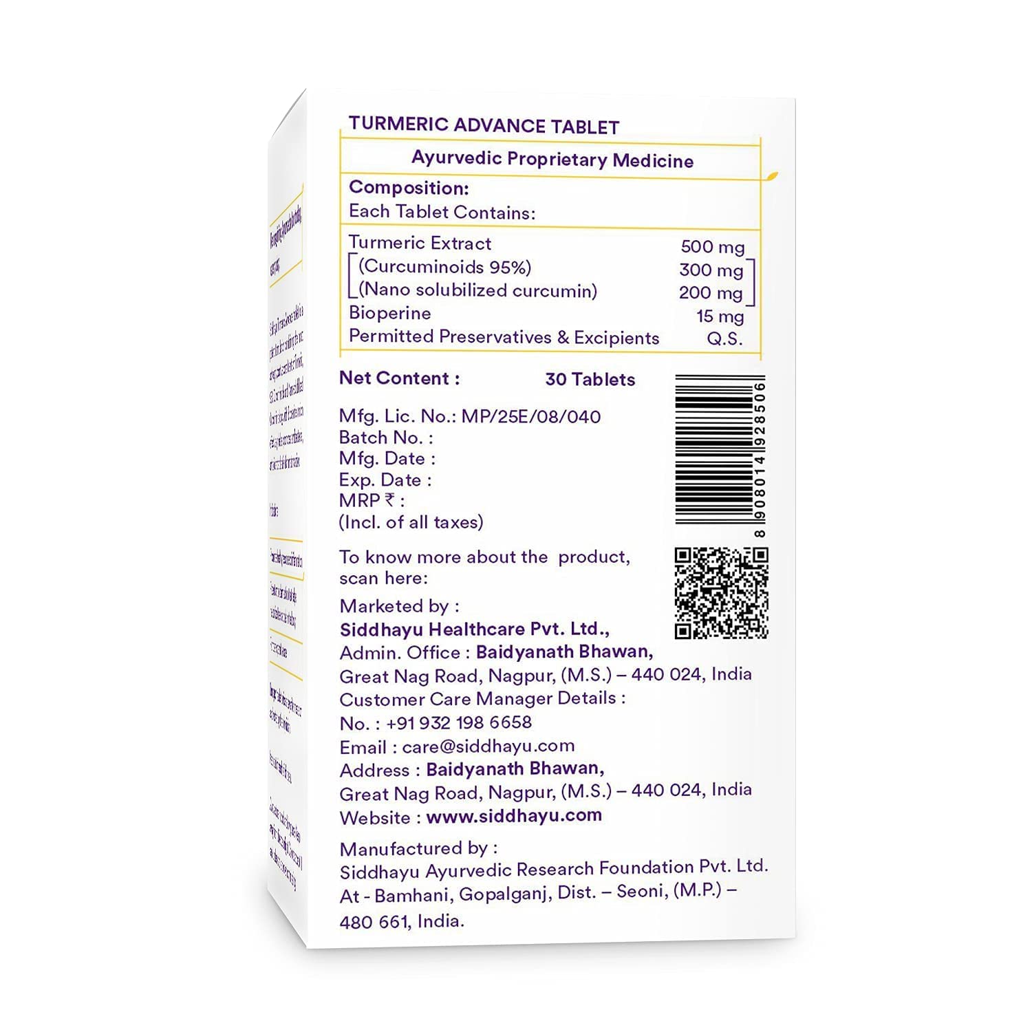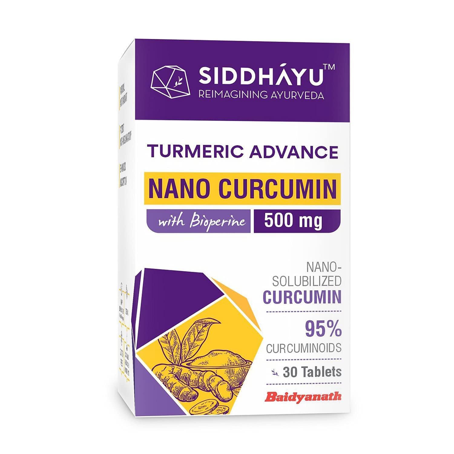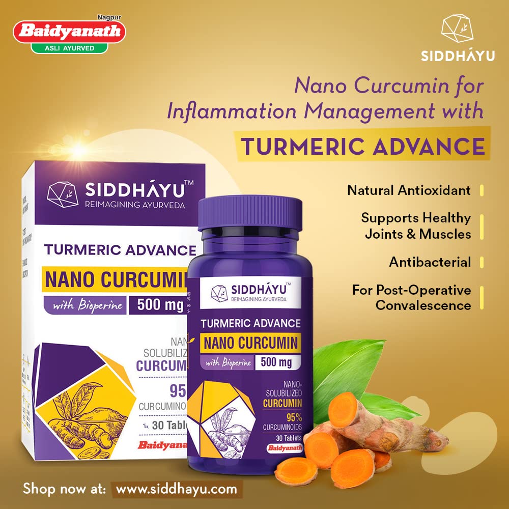 Siddhayu Turmeric Advance Nano Curcumin with Bioperine (From the house of Baidyanath) | Natural Antioxidant | Anti-Inflammatory | Pain Relief and Joint Support | 30 Tablets X 1