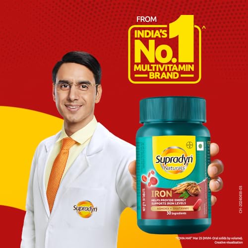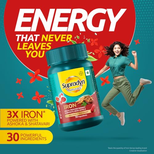 Supradyn Naturals Iron (30 tablets) with 3X Iron, Ashoka, Shatavari, Zinc, Vitamin C, Folic Acid, 30 vital nutrients, Supports Blood Health & Provides Energy, Veg