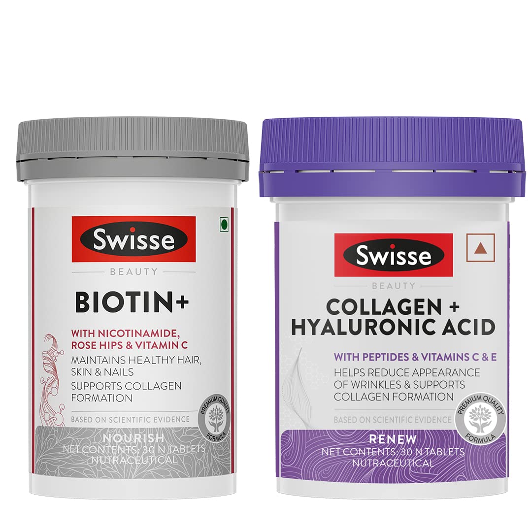 Swisse Collagen & Biotin Combo - Collagen + HA (30 Tablets) & Biotin (30 Tablets)