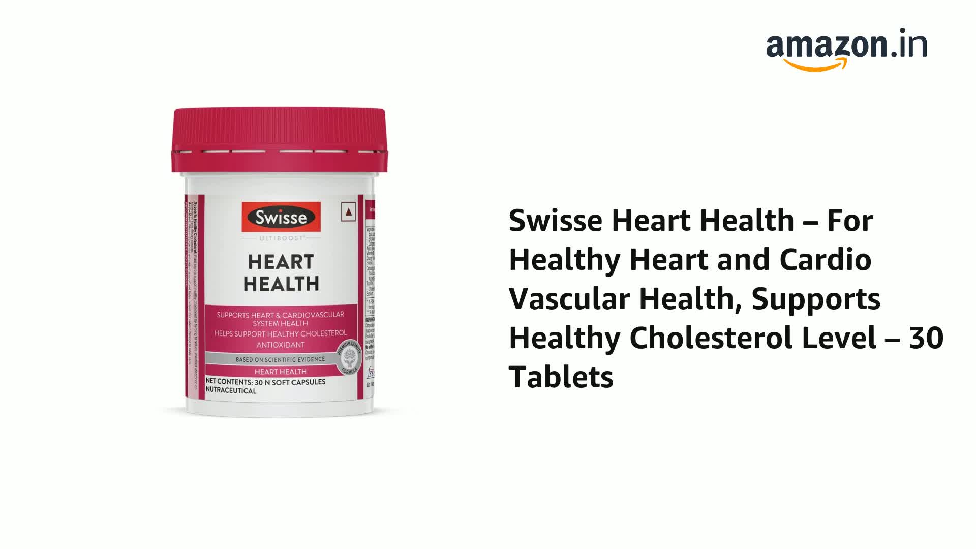 Swisse Heart Health – For Healthy Heart and Cardio Vascular Health, Supports Healthy Cholesterol Level – 30 Tablets