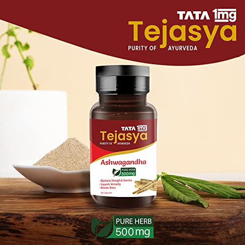 Tata 1mg Tejasya Ashwagandha Capsule 500mg, Supports Strength & Stamina, 500mg, Pack of 60 Capsules