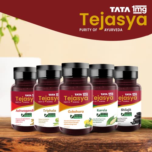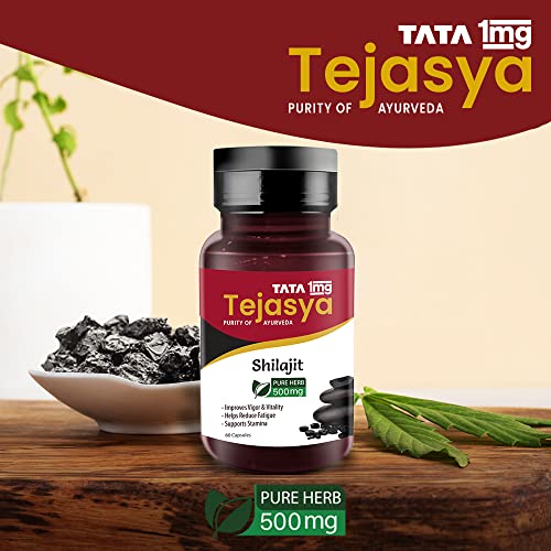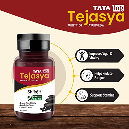 Tata 1mg Tejasya Shilajit Capsule is a purely natural herb that may help to improve vigour and vitality support stamina and reduce fatigue. Shilajit is a mineral-based extract which is pale brown to blackish brown in colour and is found in the Himalayan rocks. It consists of more than 84 minerals including copper silver zinc and iron. Tata 1mg Tejasya shilajit is made with pure natural Shilajit extract.