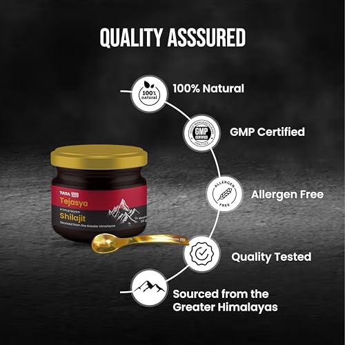Tata 1mg Tejasya Himalayan Shilajit Resin brings the goodness of ayurvedic traditional therapy. It is sourced from high-altitude areas of the Greater Himalayas formed over centuries through the decomposition of plant matter minerals and microbial activity. Shilajit resin helps in vitality rejuvenation and immunity. It has 80+ trace minerals fulvic acid and humic acid. Tata 1mg Tejasya Shilajit Resin underscores a commitment to holistic wellness presenting a natural remedy rooted in traditional health wisdom for those seeking increased vitality and resilience.