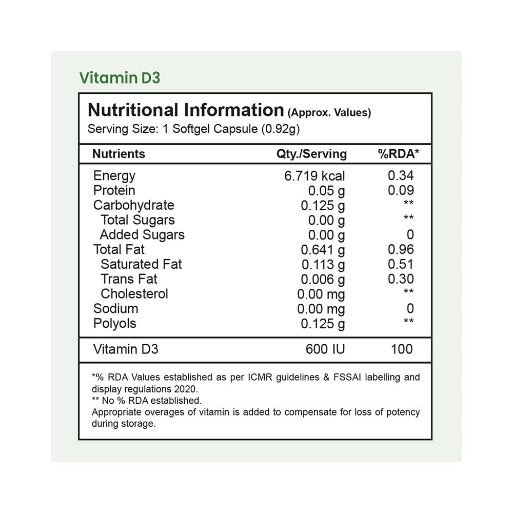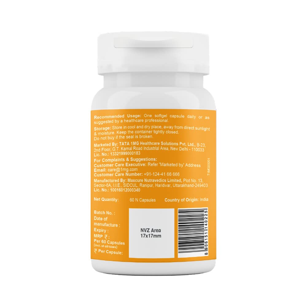 Tata 1mg Vitamin D3 Capsule Helps In Maintaining Bone Muscle And Teeth Strength And Promotes Flexibility For Unisex (Pack Of 60 Capsules)