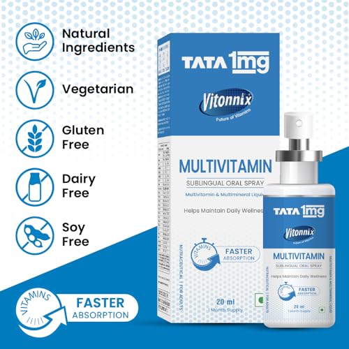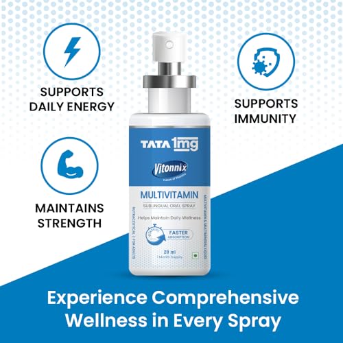 Elevate your well-being with Tata 1mg Vitonnix Multivitamin Sublingual(under the tongue) Spray â a holistic approach to optimal health through sublingual absorption. Crafted with precision this advanced sublingual formula combines a rich array of essential vitamins and minerals each contributing to various aspects of wellness. By simply spraying under the tongue this innovative sublingual spray enables swift and effective absorption of vital nutrients directly into the bloodstream. The Vitonnix Multivitamin spray offers a convenient and comprehensive way to support overall health energy levels and immune function making it a cornerstone of your daily wellness regimen.