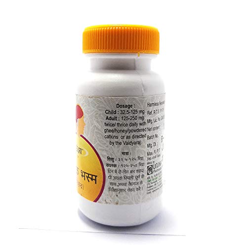 Indications: This classical naturally prepared BHASMA is clinically proved useful for pthisis breathlessness-bronchitis Lose of vital elements obstinated urinary diseses anaemia acidity and disorders of spermatogenesis.
