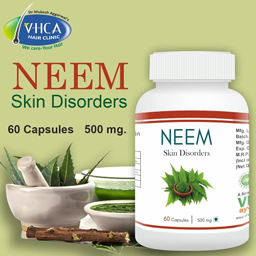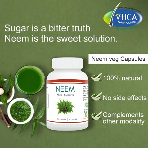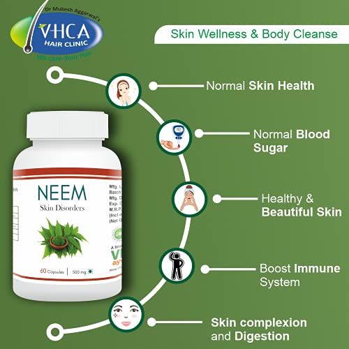 VHCA Neem Caps. | For Skin and hair | Anti acne | purifier | With properties | Helps To Build & Refills Good Bacteria(100% Pure Ayurvedic)