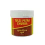 Vyas Tulasi Patra Churna is an Ayurvedic herbal powder made from the leaves of Tulsi also known as Holy Basil (Ocimum sanctum or Ocimum tenuiflorum). Tulsi is a sacred and revered plant in Ayurveda due to its numerous health benefits and spiritual significance. Here are some key points about Vyas Tulasi Patra Churna: Primary Ingredient: The primary and often sole ingredient in Vyas Tulasi Patra Churna is Tulsi leaves. These leaves are highly valued in Ayurveda for their medicinal properties. Medicinal Uses: Tulsi is known for its wide range of health benefits. It is considered an adaptogen which means it can help the body adapt to stress and maintain balance. Tulsi is used in Ayurveda to support various health issues including respiratory problems digestive disorders stress and immune support. Antioxidant Properties: Tulsi leaves are rich in antioxidants which can help protect the body from the harmful effects of free radicals. This makes Tulsi a valuable herb for overall health and well-being. Immune Support: Tulsi is believed to have immune-boosting properties. Regular consumption of Tulsi or products like Tulasi Patra Churna is thought to enhance the body's defense mechanisms. Respiratory Health: In Ayurveda Tulsi is commonly used to support respiratory health. It is considered effective in managing conditions such as cough cold and asthma. Digestive Health: Some people use Tulasi Patra Churna to aid digestion and manage digestive issues. Stress Reduction: Tulsi is considered an adaptogen which means it may help the body adapt to stress and reduce the effects of stress on the body and mind. Spiritual and Ritual Use: Tulsi is considered sacred in many parts of India and is often used in religious ceremonies and rituals. It is believed to have spiritual significance and is considered a symbol of purity and devotion. Form and Usage: Vyas Tulasi Patra Churna is typically in powder form and can be consumed by mixing it with water milk or honey. T