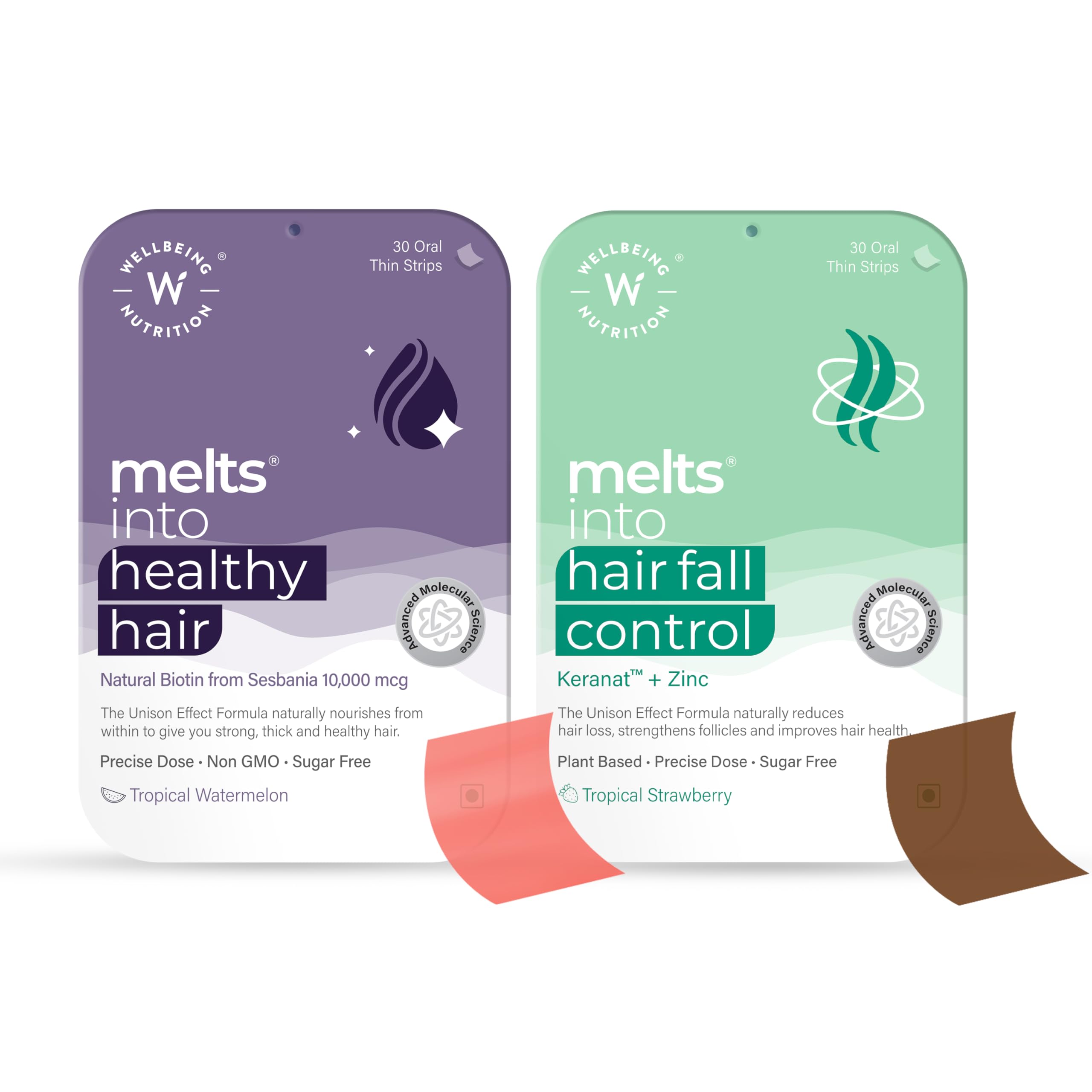 Wellbeing Nutrition Complete Hair Fall Control Kit | Melts Healthy Hair + Melts Hair Fall Control with Keranat Natural Biotin & Virgin Coconut Oil (60 strips)