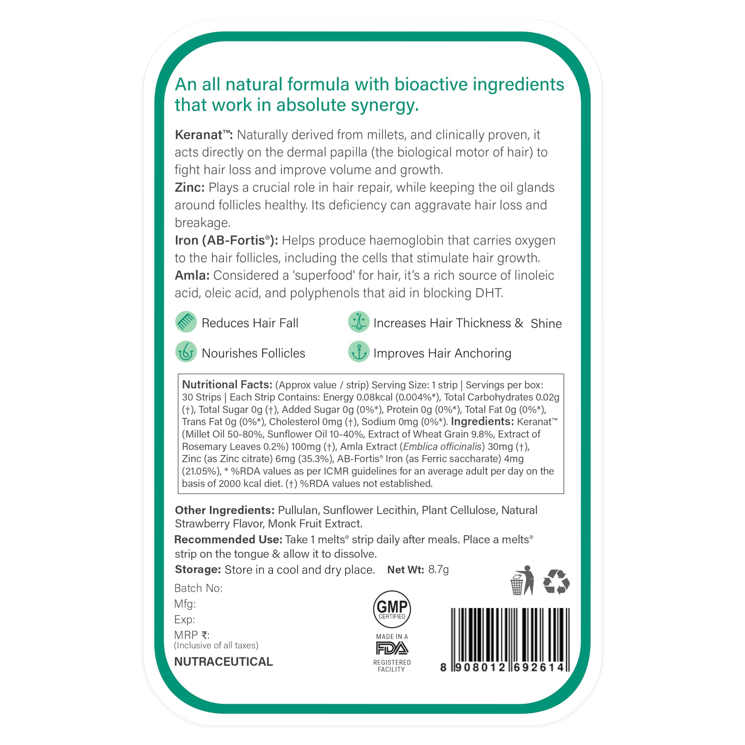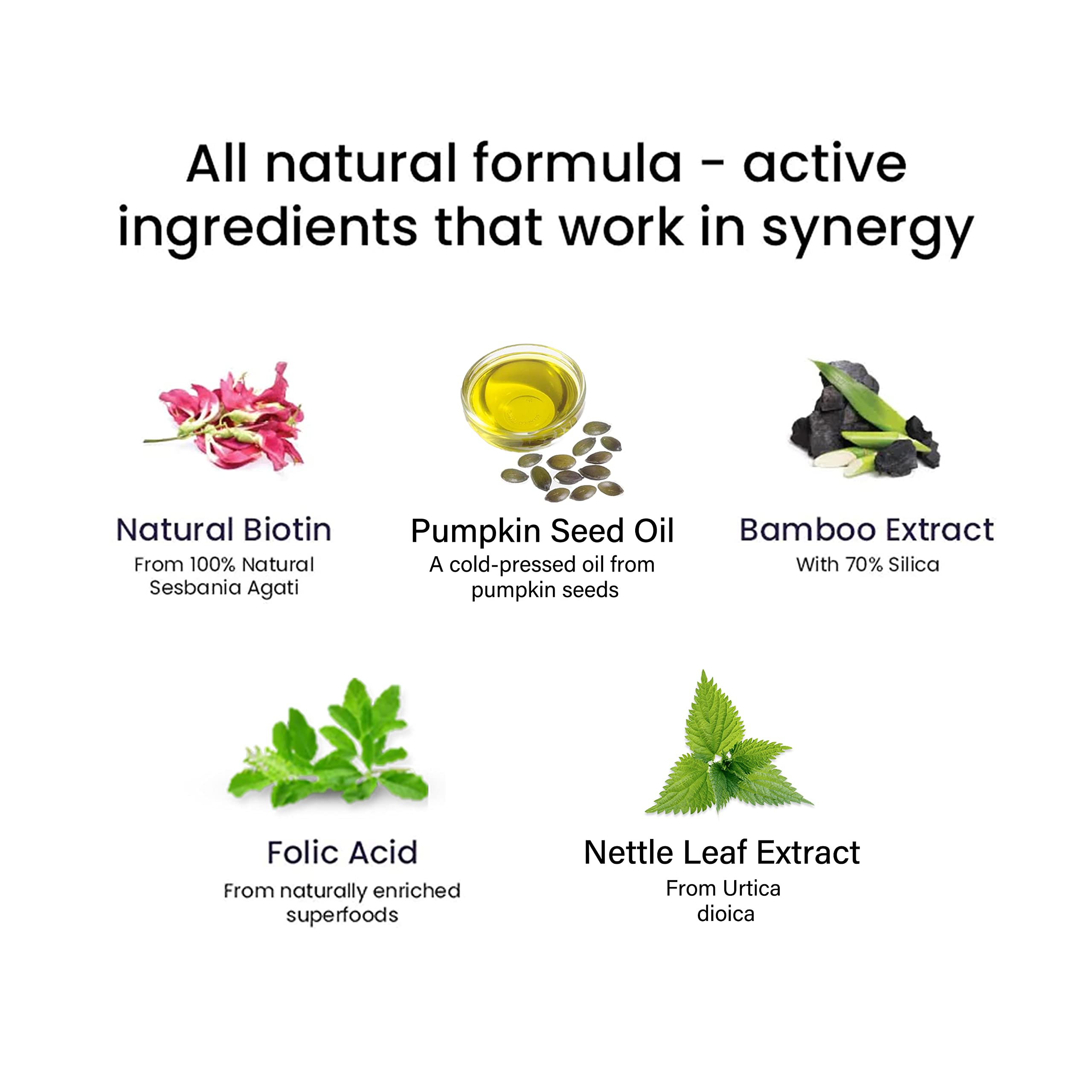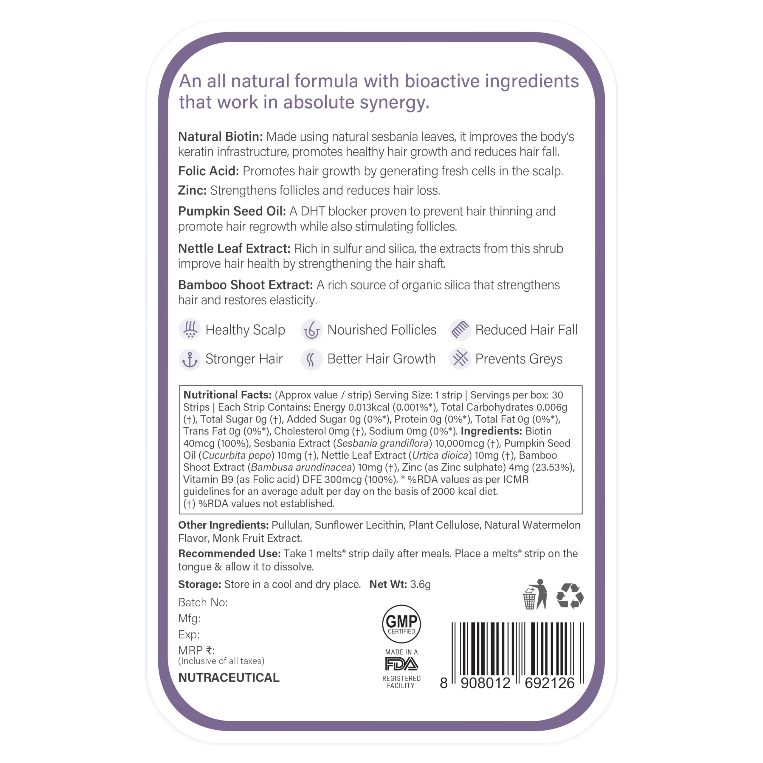 • Clinically-validated & Plant-based Biotin: With 100% Plant-based high absorption natural 10000 mcg Biotin made from Sesbania Agati leaves Healthy Hair melts improves the body's keratin infrastructure promotes healthy hair helps reduce dryness and increase