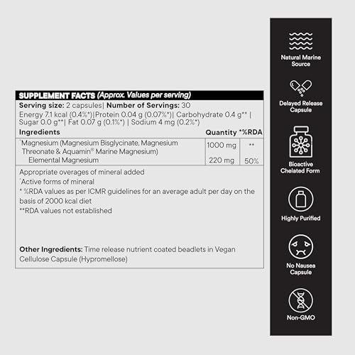 • 3-IN-1 FORMULA WITH AQUAMIN FROM SEA WATER: Presenting India's very first breakthrough supplement that combines the high absorption benefit of 3-in-1 Magnesium. Clinically proven and highly bioavailable Aquamin produced from pristine Irish seawaters is an