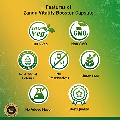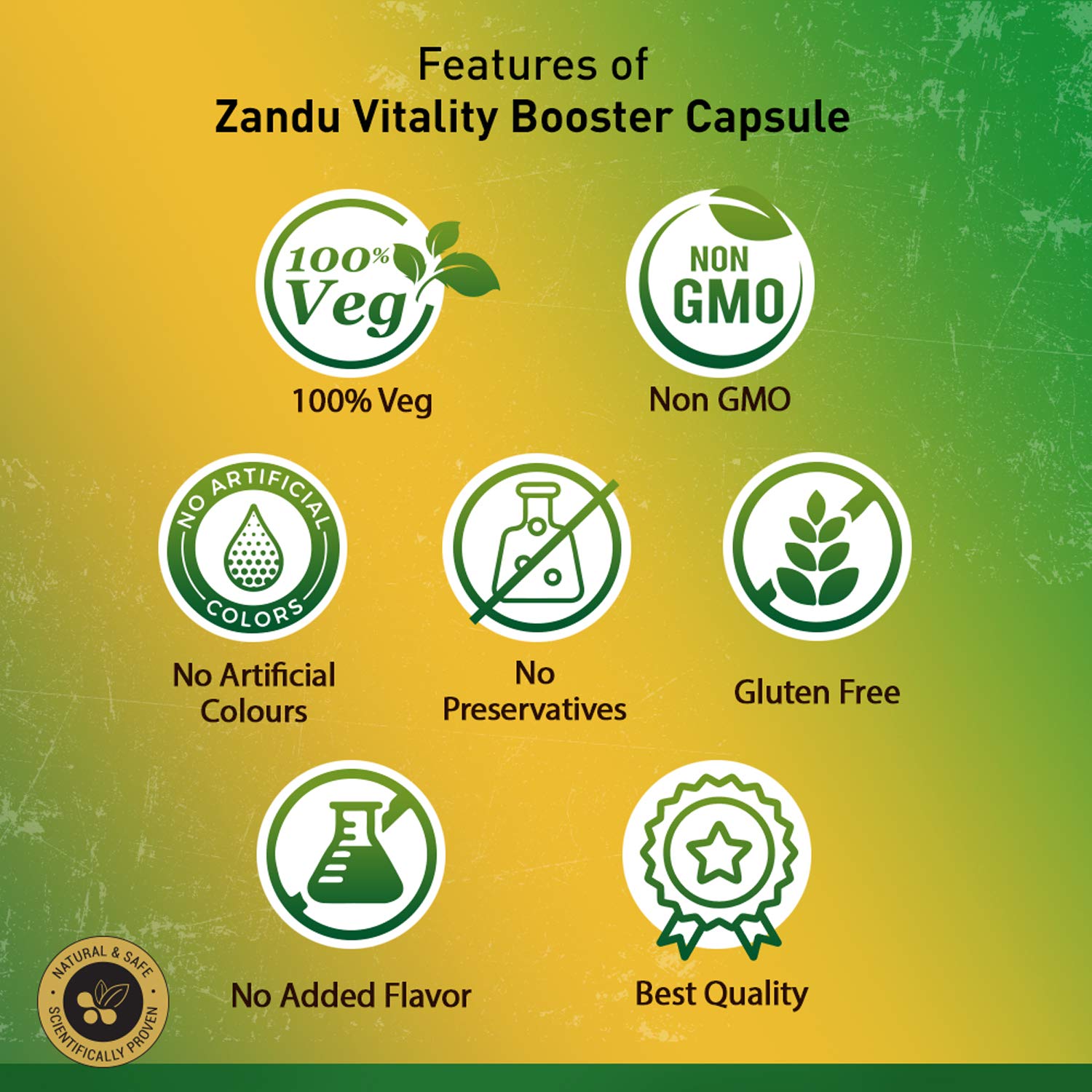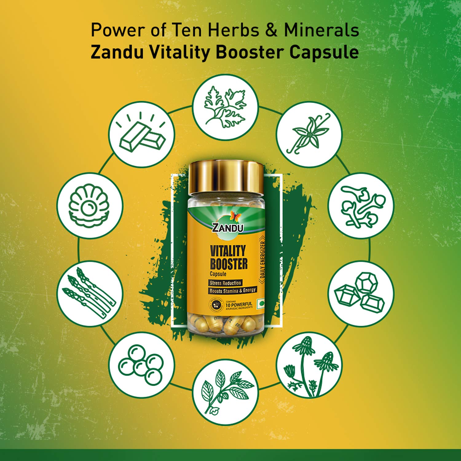 Zandu Vitality Booster Capsule, With Goodness of Ashwagandha, Safed Musli, Gokshur, Shuddha Shjilajit, Helps to Boost Energy and Strength - Pack of 120 Veg Capsules