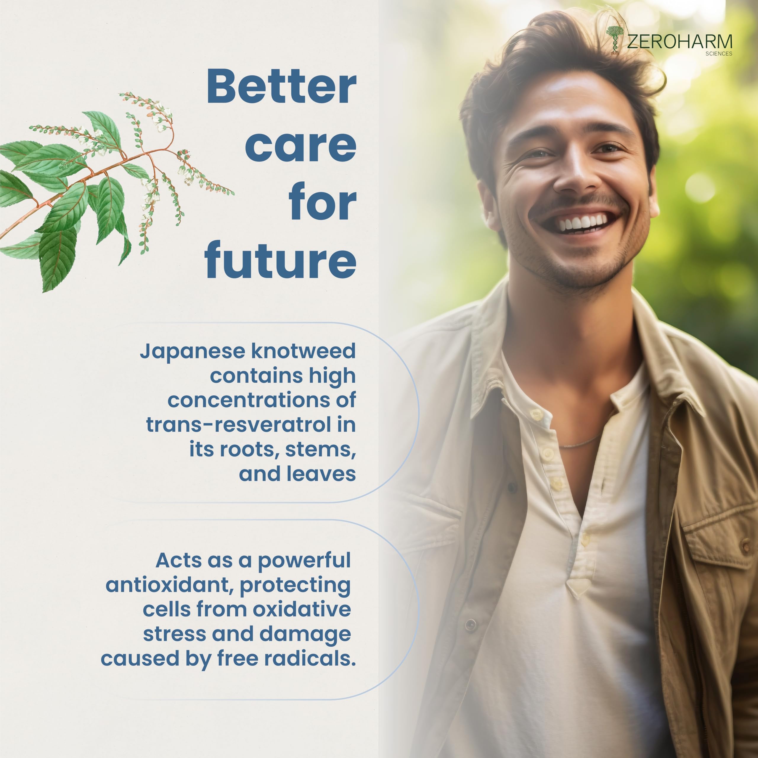 ZEROHARM Trans-Resveratrol Supplements | 250 mg Pure Resveratrol with Japanese Knotweed Extract - Support Immunity Support Healthy Aging | Antioxidant Supplement For Men & Women | 60 Veg Capsules