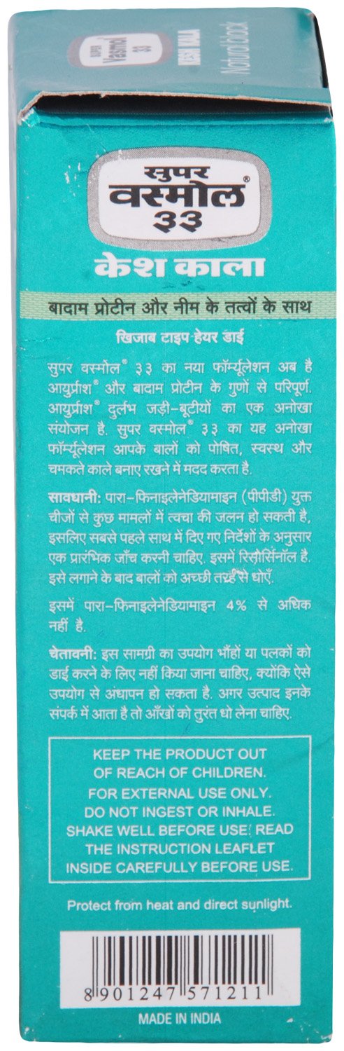 New formulation of Super Vasmol 33 now comes enriched with the goodness of ayurprash a unique combination of rare herbs and almond protein which is known to benefit your hair. This formulation with Ayurprash and almond protein helps keep your hair nourished healthy and shining black.