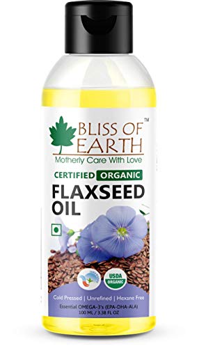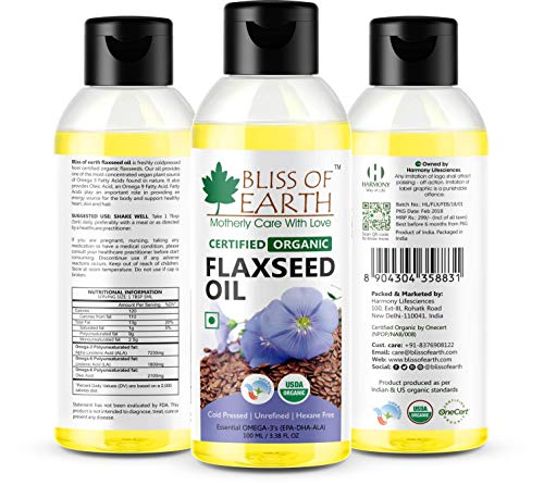 A lesser known but power-packed addition to your skin hair and health care regimen it is tough for Flax seeds oil to hide its light under a bushel. Given its exceptionally impressive nutritional profile it is small wonder that Flaxseeds oil is slowly but steadily earning its much-deserved spotlight.With its nutty slightly sweet flavour a tablespoon of flaxseed oil if consumed wouldnt compel your nose to crinkle and taste buds foment a rebellion. That spells good news for all the health freaks out there looking to redo their diet plans.Flaxseed oil contains 50- 60 percent omega-3 fatty acids in the form of alpha-linolenic acid(ALA). Omega-3 fatty acids play a salient role in all sorts of bodily processes from inflammation to heart health to cognitive functions.Topical application of Flax seeds oil helps nourish skin by quenching its thirst for moisture imparting suppleness and healing cracks. Your tresses are left smoothed-out frizz-free and lustrous without a non-oily look.Checks all the boxes right?Waitthereomore. Bliss of EarthoCertified Organic Flax seeds oil is cold-pressedunrefined free from any kind of preservatives or chemicals cruelty-free and vegan. Now does it check all the boxes correct?We are sure it does. Nourish yourself naturally inside out!