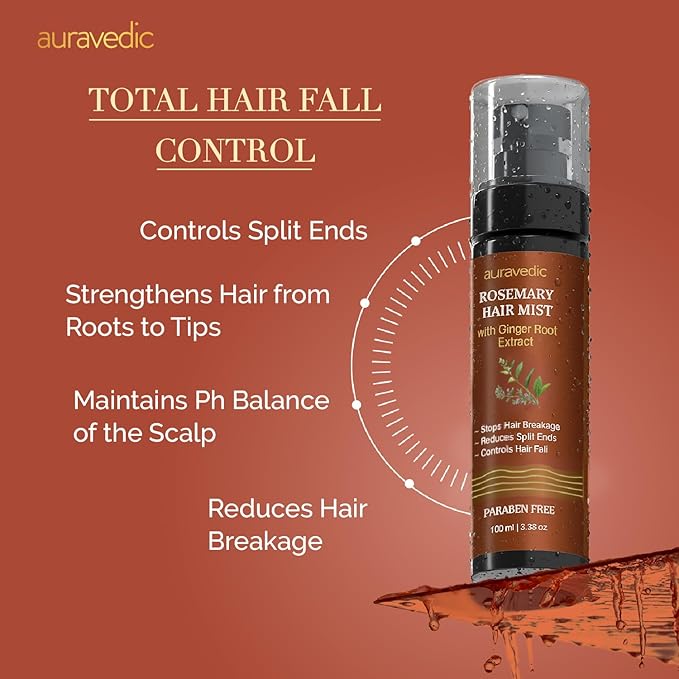 HomeHealth & PersonalHair CareHair Protect SerumAuravedic Rosemary Hair Spray For Women Men 100 Ml Rosemary Water Spray For Hair Growth Serum For Scalp Mist With Vetiver Hibiscus Ceramide Caffeine Biotin Keratin Niacinamide