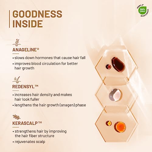 A potent but effective serum for improved hair growth decreasing hair density & fullness with patented clinically proven ingredients Anageline & RedensylTM infused with Hibiscus extracts & Vitamin B6. The ingredients promote micro-circulation of oxygen & nutrients to hair follicles and help prolong the anagen phase (hair growth) & shorten the telogen phase (hair ).