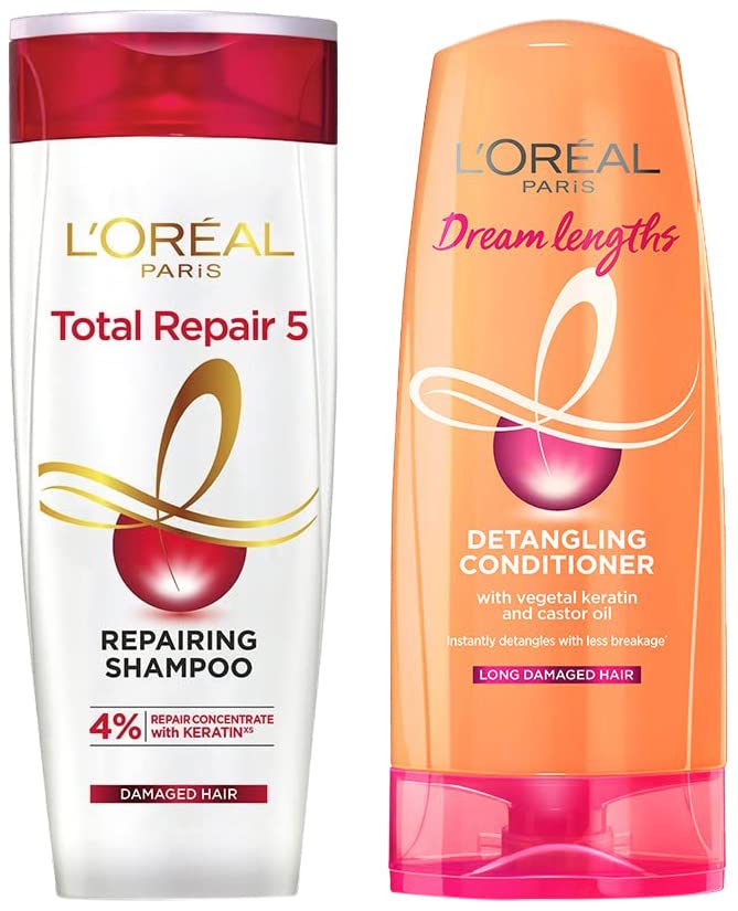 L'Oreal Paris Total Repair 5 Repairing Shampoo with Keratin XS 396ml & L'Oreal Paris Dream Lengths Conditioner 192.5 ml