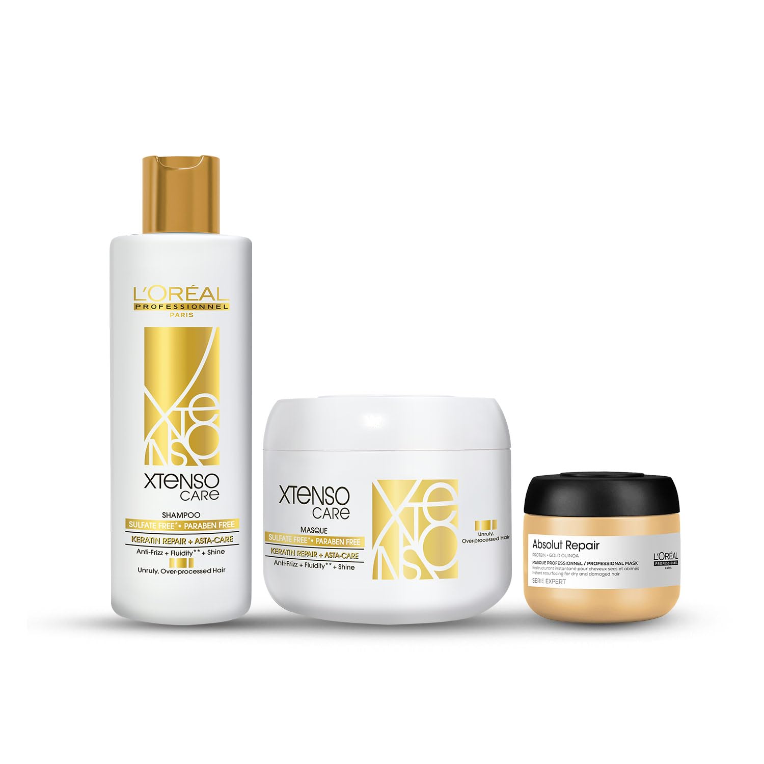 L'Oreal Professionnel Xtenso Care Sulfate-free* Shampoo 250ml and Hair Masque 200ml Combo for All Hair Types (Pack of 2) with Absolut Repair Travel-Size Mask 75ml