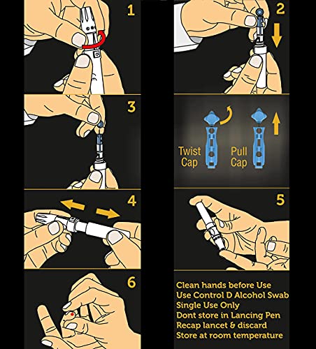 Control D Comfort Lancets have tri-beveled tips and eletro-polished for maximum comfort. The lancet cap is specially designed as a star to allow ease of twisting and removal.