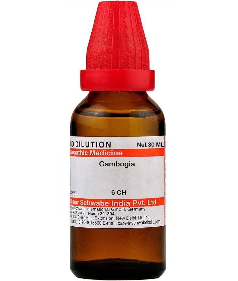 Dr Willmar Schwabe India Gambogia Dilution helps in controlling various conditions of the alimentary and gastro-enteric tract. It helps in curing diarrhoea and irritable stomach with abdominal pain. It helps in relieving the throat and tongue dryness. The drug is effective in getting rid of heavy head drowsiness burning and itchy eyes.
