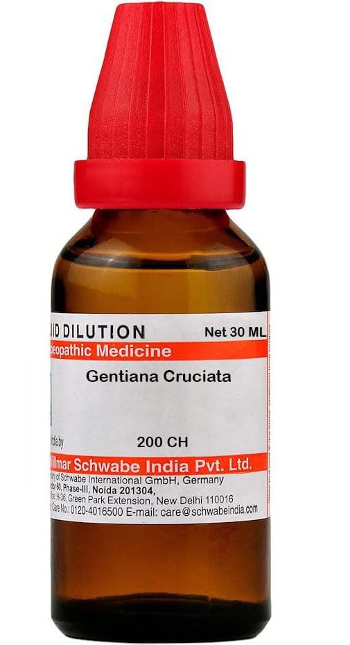 Dr Willmar Schwabe India Gentiana Cruciata Dilution is a very effective and versatile drug for the treatment of many conditions related to stomach stool throat etc. It helps in stomach ailments feeling of dizziness vomiting and burning sensation. It also helps in relieving movements with headaches and heaviness of the stomach copious pasty stool. It provides effective relief from the cramp like pains in the whole body which makes it uneasy to rest or sleep.