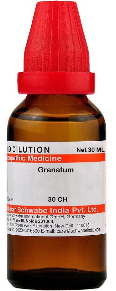 Dr Willmar Schwabe India Granatum Dilution is a homeopathic remedy which is useful in the treatment of various ailments of eyes stomach chest and skin.