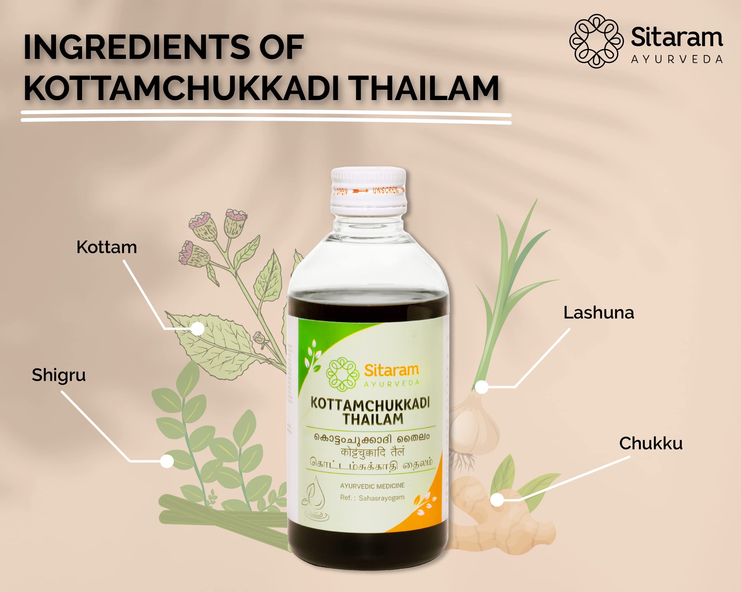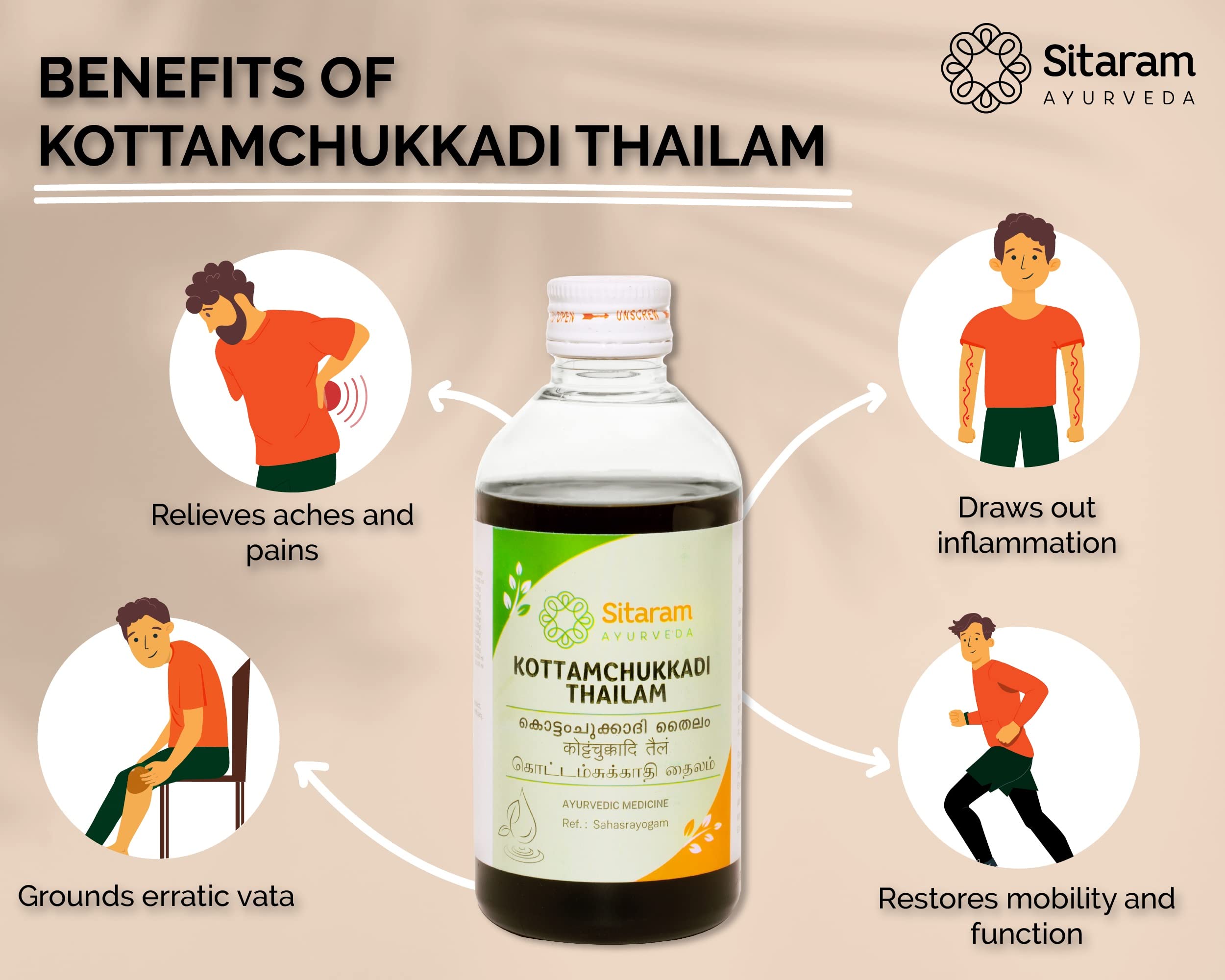 Sitaram Ayurveda Kottamchukkadi Thailam (200 ml) | Kerala Ayurvedic Kottamchukkadi Thailam To Reduce Inflammation & Reduce Pain