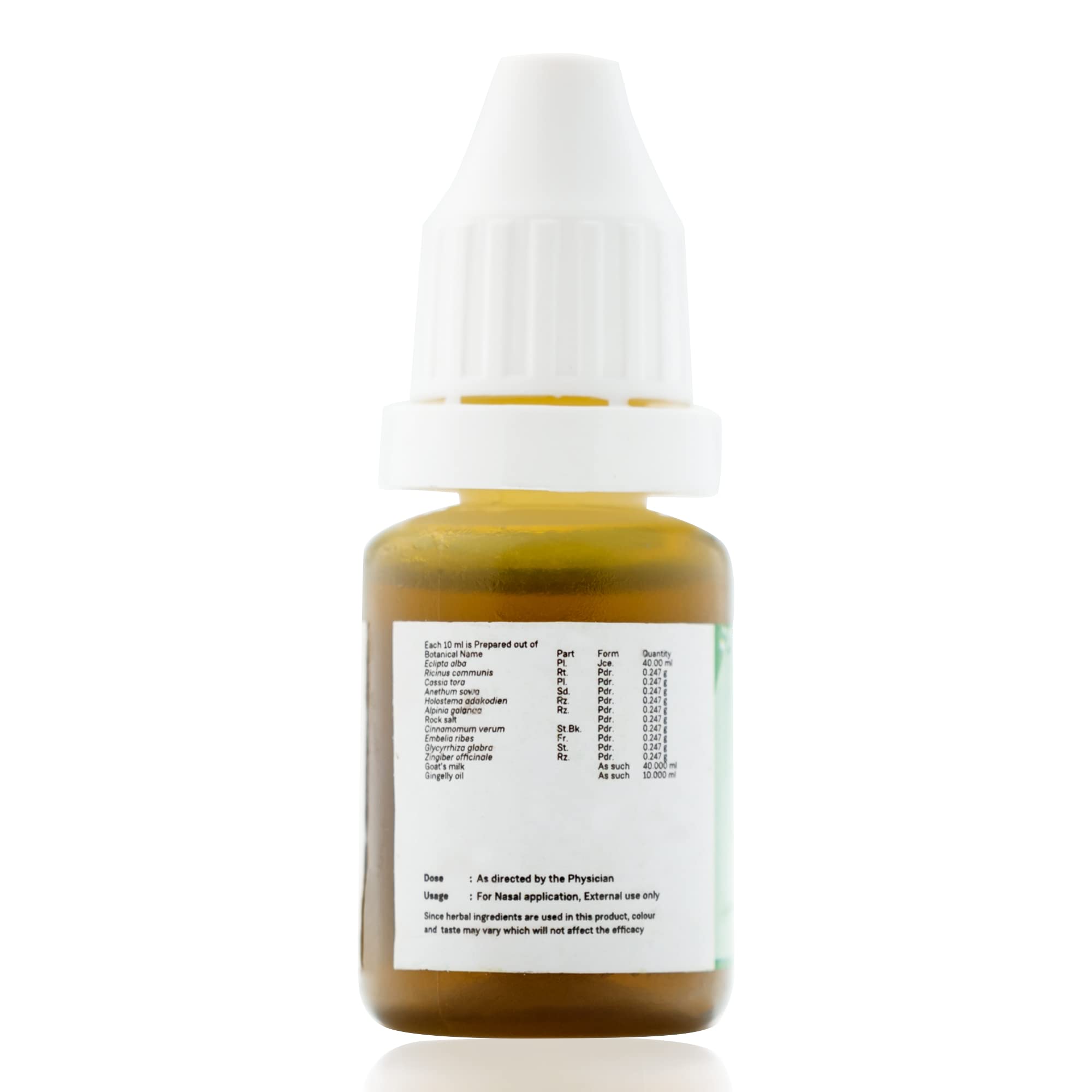 Shadbindu taila is a classical taila preparation prescribed for nasya (nasal instillation). It rids the body especially the Uttamanga (Head) of Kapha-Pitta ailments and balances the tridoshas. Shadbindu oil is a well-crafted combination of tridoshahara herbs and roots in a rich base of fortified with goats milk that heas well as nourishes.