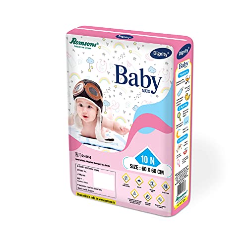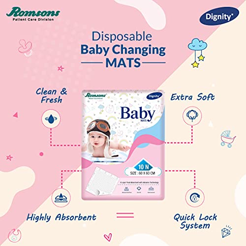 Dignity Disposable Baby Changing Mats, 60 X 60 cm, 10 pcs/Pack (Pack of 12) 120 Pcs
