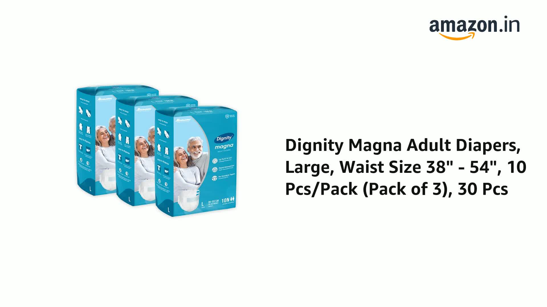 • Dignity Magna Adult Diapers are designed for involuntary urination or defecation in both men & women. Magna provides Protection for up to 8-10 hours.