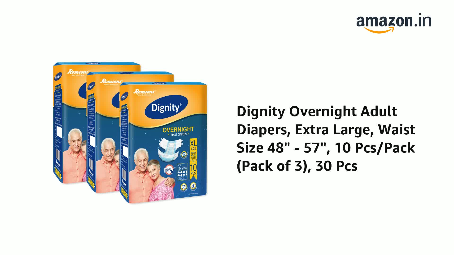 Dignity Overnight Adult Diapers are designed for involuntary urination or defecation in both men women. Overnight provides Protection for up to 12-16 hours.