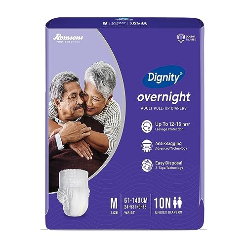 Dignity Overnight Pull Up Adult Diapers Pant Style - 10 Count (Medium) with Soft Elastic and Extra Absorbent Core, Waist Size 24" - 53", 10 Pcs/Pack (Pack of 1)