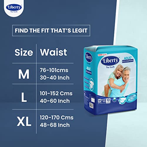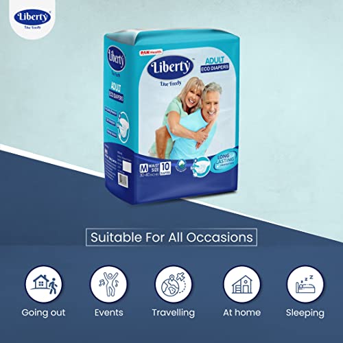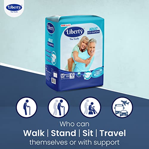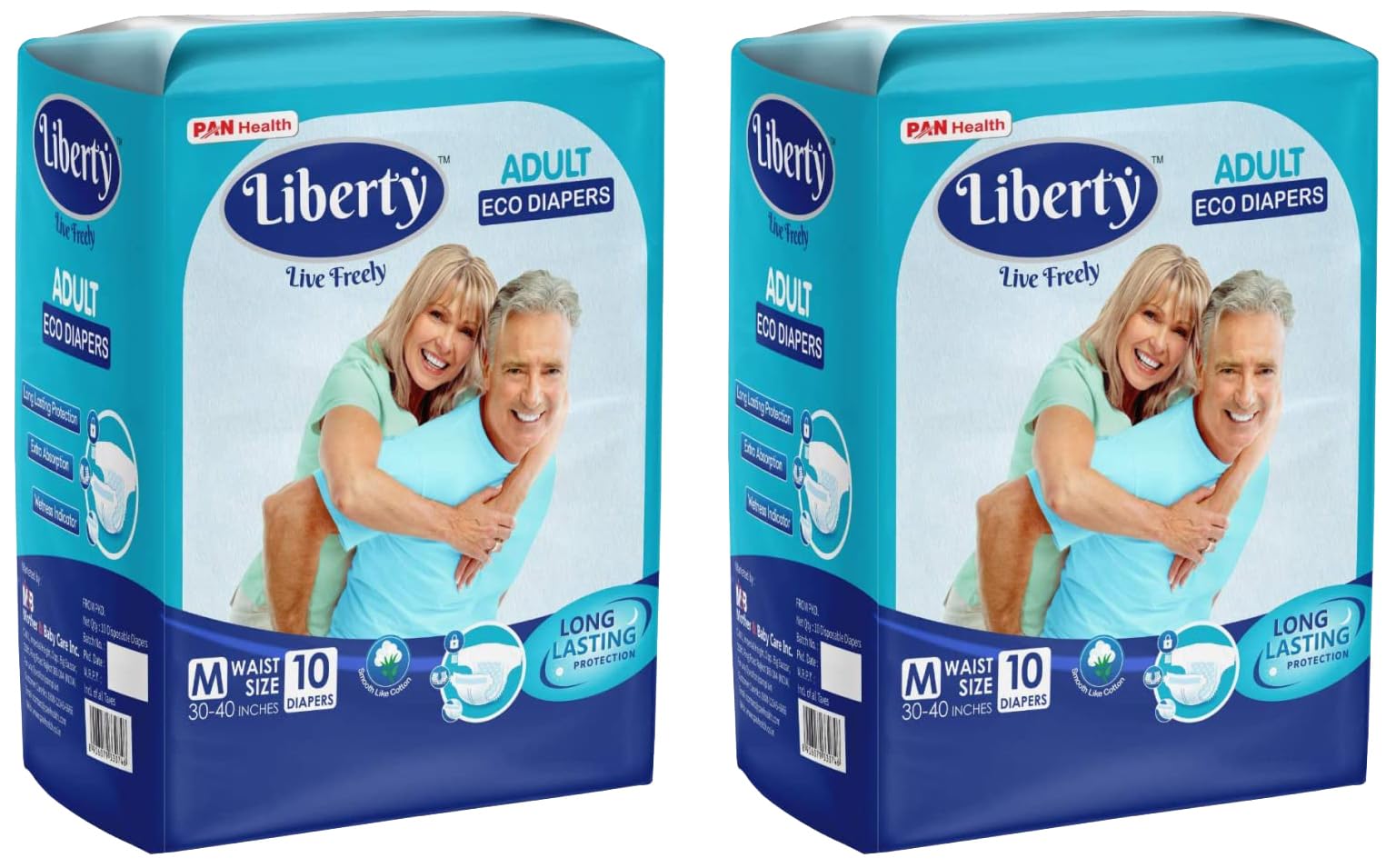Liberty Popular Adult Diapers, Tape Style, Medium (M) Size, 10 Count, Waist Size (76-101cm | 30-40 inches), Unisex, High Absorbency, Leak Proof, Wetness Indicator, Pack of 2