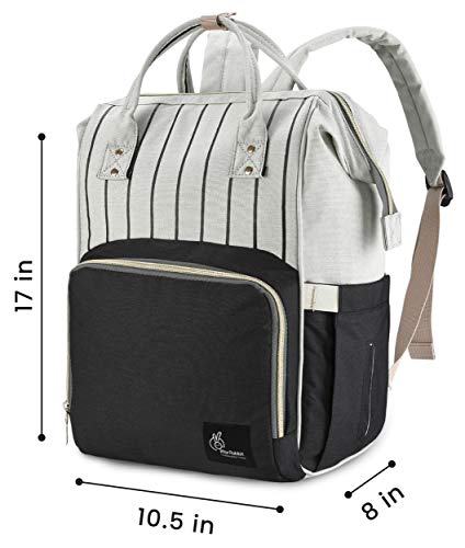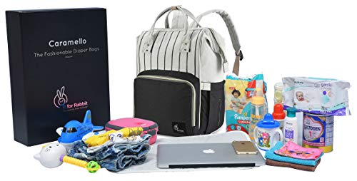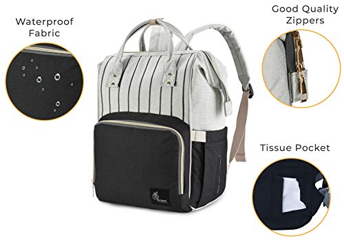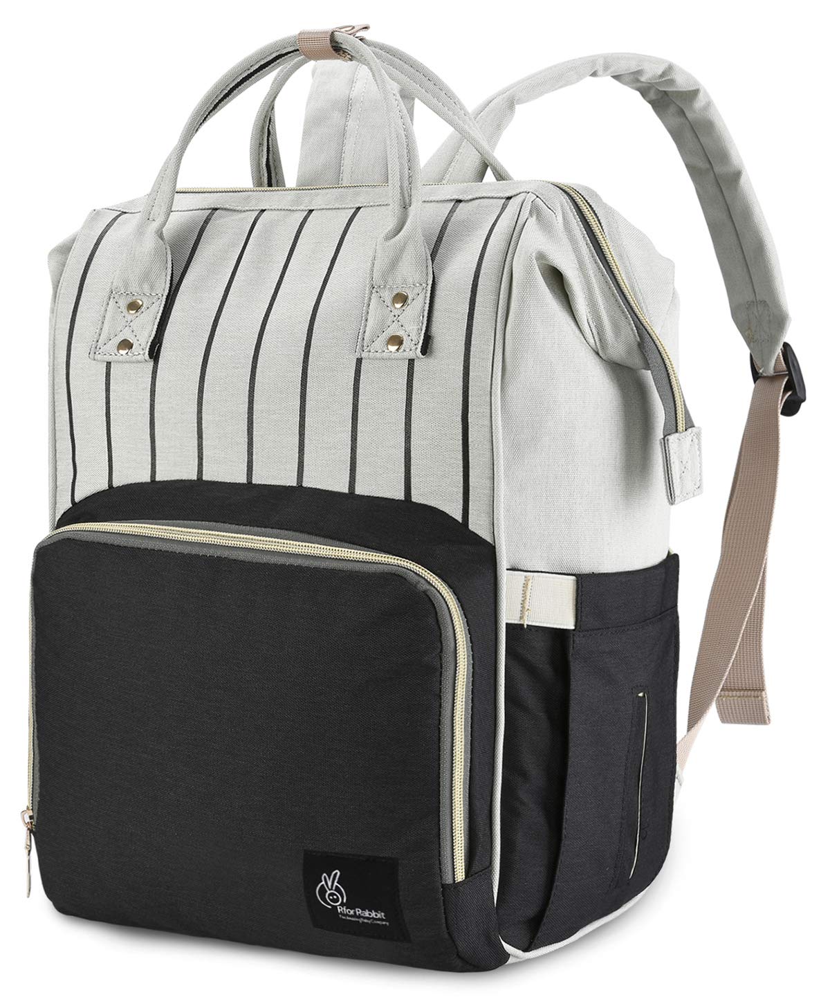 R for Rabbit Caramello Baby Diaper Bags for Mom for Travel, Large Capacity Stylish Waterproof Multipurpose Maternity Diaper Backpack for Mothers (Black Strips)