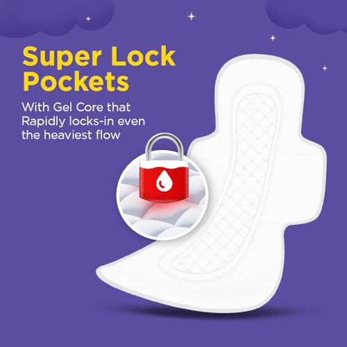 2x better coverage extra long and extra wide sanitary napkins for all round protection throughout the night
