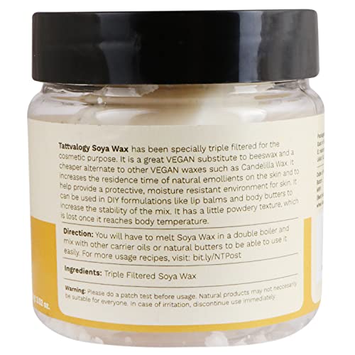 Nature's Tattva soya wax has been specially triple filtered for vegan cosmetic use. A large section of the vegans in India are already using our unique product. It is a great replacement for beeswax in your vegan cosmetics. Only thing to keep in mind is that soya wax is little grainy as compared with other waxes but once mixed and heated with other butters such as shea and kokum its grainy texture decreases.