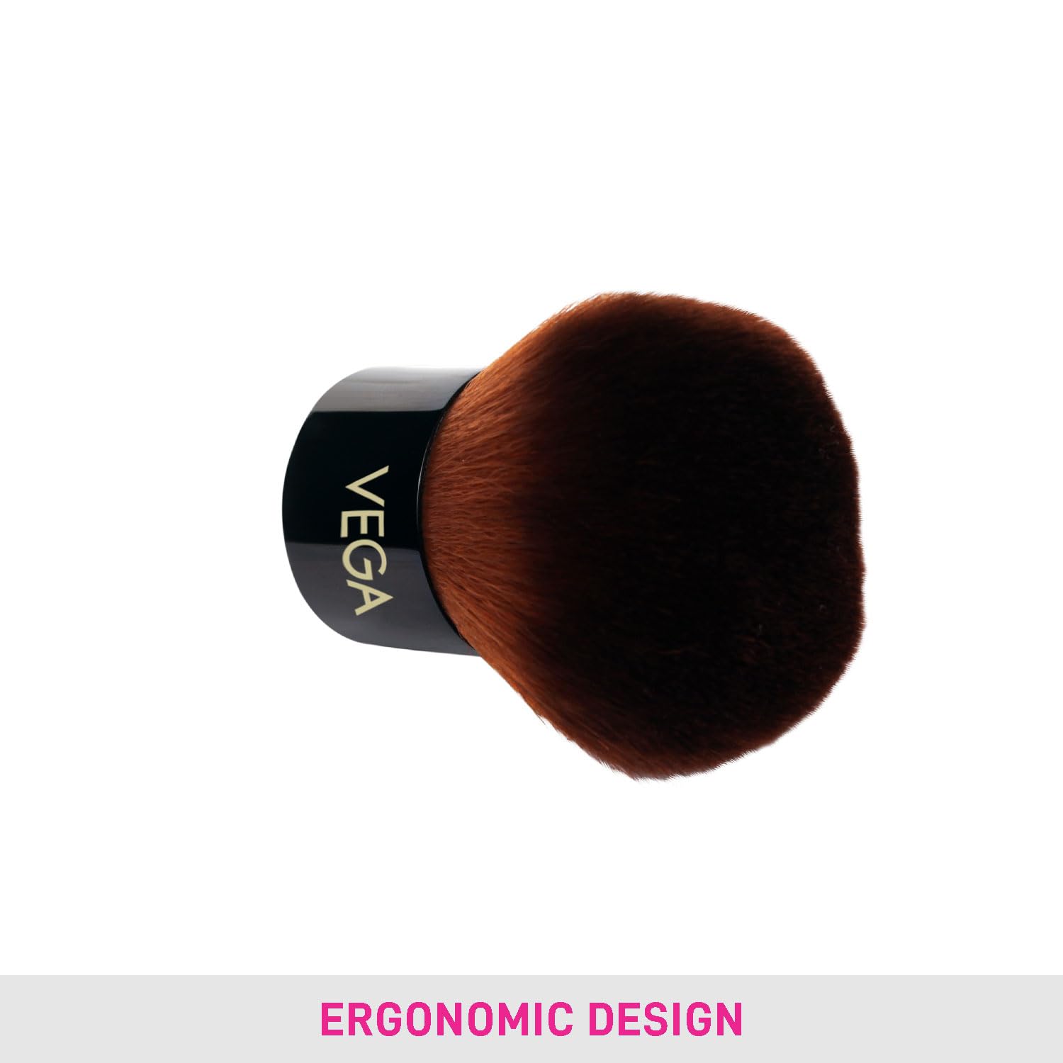 Vega brush is perfectly shaped to apply loose powder. The sculpted brush head allows more precise application