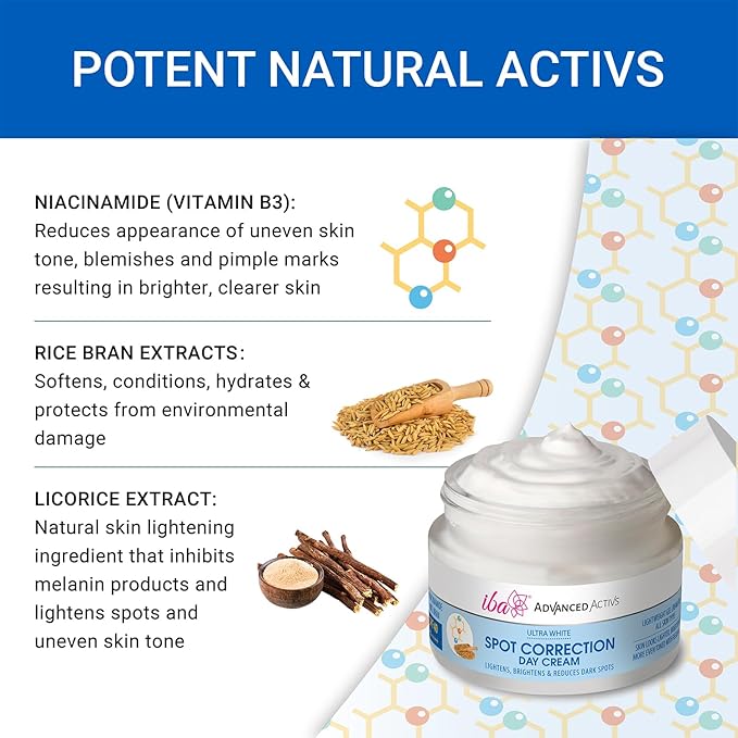 Iba Advanced Activs Ultra White Spot Correction Day Cream, 50g with Niacinamide (Vitamin B3) for Lightens, Brightens & Reduces Dark Spots