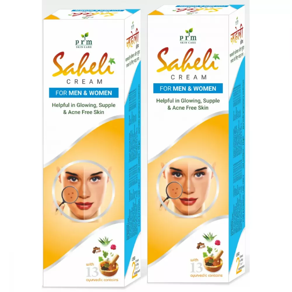Saheli face cream is a special ayurvedic formulation filled with years of ayurvedic wisdom that has been developed by PRM & COMPANY to give glowing, supple and acne free skin. Saheli cream made with 13 ancient herbs like Aloes, Wheatgerm Oil, Neem, Turmeric, Chandan, Tulsi, Gulabdal and many more